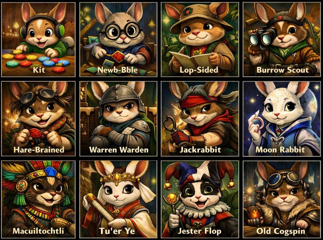 The built-in opponents are not merely "easy" through "hard." Each of Rusty Rabbit's kin can favor a different habit: Kit loves tiny fireworks, Newb-Bble likes more tiles, Lop-Sided scrambles for one neighborhood, Burrow Scout notices lanes, and stronger rabbits will push deeper into denial, conversion, and endgame control.